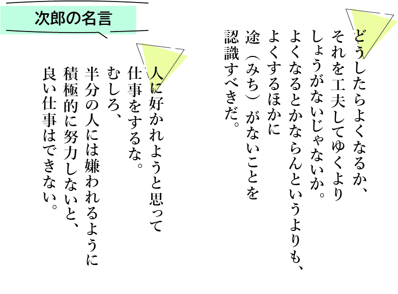 ケンブリッジ大学で学んだ品格と誇りを生涯大事にしていた次郎は、GHQの民政局長であったホイットニー准将との初対面の席で、「キミは英語がなかなか上手だね」と言われた際にも、「あなたも、もう少し勉強すれば上手になりますよ」と皮肉で返すほどに、誰に対しても怯むことはなかったと言われています。
